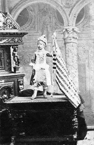 Nellie Keeler was born with dwarfism on April 6, 1875, in Kokomo, Indiana.[1] She was the youngest of three daughters and a son raised by Ezra and Maria Keeler. Her father was a farmer and a Civil War veteran, having served with the 4th Indiana Cavalry. Ezra Keeler died in 1917 while in his seventies at a home for disabled war veterans in Marion, Indiana.[2] Maria Keeler lived to be in her late eighties, and died in 1937 in Kokomo.[3]
