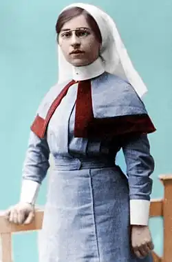 - ^ The other woman casualty to be buried in Belgium is Sister Elsie Mabel Gladstone ARRC, who died of pneumonia on 24 January 1919, age 32 and is buried at Namur.[2]