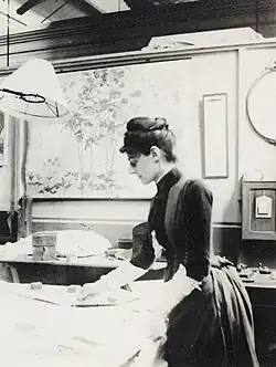 She joined the Royal School of Art Needlework with her sister Georgiana in 1879[1] when Louisa Anne Wade was the leading figure.[2]