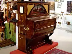 A Chanson a dancer is exhibited in the museum. This is a musical machine built in the late nineteenth century by the Frenchman Folliot. It comes from Verdun and was played in the Café chantant. It comprises a mechanical spring system and a phonotactical cylinder, through which small hammers beat on the strings and the bells reproduce one of the ten pinned cylinder melodies.[5]