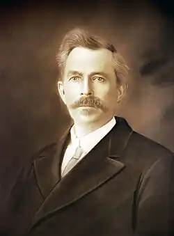 Nelson Button was born on February 17, 1849, in Indiana. He helped plan Meade, Kansas, before participating in the Land Run of 1889 and settling in Oklahoma City.[1] He was appointed to the original board of trustees alongside David Williams Gibbs between July 15, 1890, and August 9, 1890.[2] Afterward he was elected to represent Ward 1 of the Oklahoma City Council and served until elected mayor in 1894. He was mayor between April 9, 1894, and April 13, 1896. He died in Utah on April 27, 1914.[1]