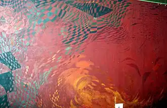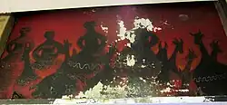 Terremoto ('earthquake'), painted in 1958, is over 30 square meters, and covers the whole vestibule wall of the Nile Cinema. The mural has visible cracking produced during the Earthquake in 2010.[1]