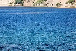 Lake Nemrut (Turkish: Nemrut gölü) is located in the south-western part of the caldera and is now a freshwater lake. Similar to Lake Van, under the influence of volcanic processes it is gradually becoming a saline lake.[29] The lake is fed by hot springs, which is why it is warmer at the bottom than at the surface and does not freeze in winter. The total area is 4.9×2.1 km,[30] the average depth is 140 m, and the maximum depth is 176 m;[15] the altitude of the lake is 2,247 m (7,372 ft) above the sea level.
