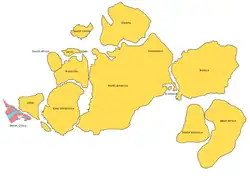 Nena, an acronym for Northern Europe–North America, was the Early Proterozoic amalgamation of Baltica and Laurentia into a single "cratonic landmass", a name first proposed in 1990.[1] Since then several similar Proterozoic supercontinents have been proposed, including Nuna and Arctica, that include other Archaean cratons, such as Siberia and East Antarctica.[2] In the original concept Nena formed c. 1,900 million years ago in the Penokean, Makkovikan, Ketilidian, and Svecofennian orogenies.[1] However, because Nena excludes several known Archaean cratons, including those in India and Australia, it is strictly speaking not a supercontinent. Although Nena and Nuna share many similarities, Nena accounted for a larger landmass than Nuna. This extended landmass included the Angara, Antarctica, Baltica, Laurentia, and Siberia bodies.[2] Nena, or Nuna, can, nevertheless be thought of as the core of Columbia, another supercontinent concept with several proposed configurations.[2]