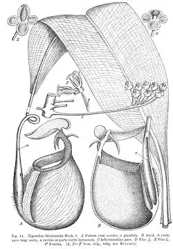 - ^ a b (in Latin) Hooker, J.D. 1873. Ordo CLXXV bis. Nepenthaceæ. In: A. de Candolle Prodromus Systematis Naturalis Regni Vegetabilis 17: 90–105.