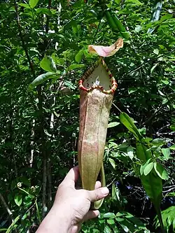 - c.^ Plant material identified as N. spinosa by Tamin and Hotta consists of two main specimens: Tamin & Asmiati 425 and Tamin & Asmiati 426. Both are deposited at the Herbarium of Andalas University in Padang, West Sumatra and appear to represent N. sumatrana. However, Figure 8 in Tamin and Hotta's treatment illustrates a lower pitcher (Hotta 31158, held at the Herbarium of Kyoto University) that probably belongs to N. gymnamphora.[7]