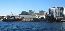 The 1200-tonne Bob Barker, was named after famous television game-show host and animal activist Bob Barker, who made the purchase of the retired Norwegian whaling vessel possible with a donation of US$5 million.[15] This ship and the Irwin were both given new dazzle paint jobs in 2011. They were easy to tell apart since as the Irwin has a 77 painted on its bow while the Bob Barker had a shark's mouth design on its bow. In November 2022, Sea Shepherd announced that The Bob Barker would be retired and scrapped due to its thinning hull stating in a post, "The thinning hull and the ageing machinery, means that the vessel can no longer be operated safely. Therefore, Sea Shepherd Global has a responsibility to the safety of life at sea, and the marine environment, to retire the vessel permanently."[16]