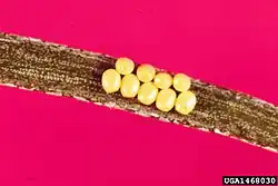 The wingspan is about 21 mm. The moth flies from August to October depending on the location.