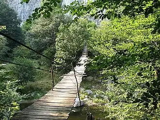 Nera Gorge-Beușnița National Park with an area of 36,758 ha (90,830 acres)[3] was declared natural protected area by the Law Number 5 of March 6, 2000 (published in Romanian Official Paper Number.152 on April 12, 2000)[4] and represents a mountainous area (mountain peaks, cirques, crevasses, caves, valleys, canyons, waterfalls) that shelters a large variety of flora and fauna; some of the species are endematic or very rarely.