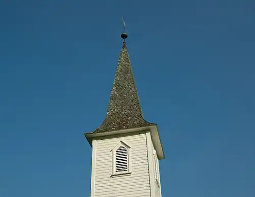 The earliest existing historical records of the church date back to the year 1322, but that was not the year of construction. The first church on this site was a wooden stave church, likely built in the early 1300s. In 1686, the building was described as having a 15-by-6-metre (49 ft × 20 ft) nave. In 1722, the 400-year-old building was described as having a pointed tower in the center of the roof and the interior was well-maintained in every way. In 1835, the ancient church was torn down. The following year, a new church was completed just south of the site of the old church building. Some of the materials from the old stave church were reused in the new church. The new building was consecrated in 1836 by the local Dean Wilhelm Christian Magelsen. The new church was described as being rather plain, similar to a square box with unpainted plank walls inside (others thought it was quite ugly). In 1909, the church was extensively rebuilt according to drawings by Schak Bull. This included a new church porch and sacristy were added improve the look of the church on the outside, plus there were several minor changes and paint on the inside to make the church more attractive. In the 1950s, the church received electric lighting and heating.[3][4][5]