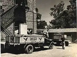 Nesher Beer was the country's first industrially brewed beer. It was a joint French-Yishuv venture. [2] Production began in 1935 at the "Palestine Brewery Ltd" in Bat Yam. The distinctive, spread-wing eagle logo, still used today, was selected in a public competition advertised in the Palestine Post (now the Jerusalem Post).[3]