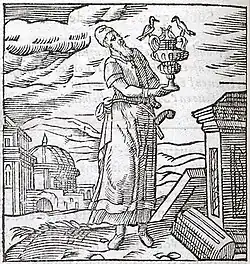 Ancient critics writing on the Iliad were particularly interested in three aspects of Nestor's Cup: its size, why it was that only Nestor could lift it, and the doves on its handles.[2] At least as early as the fifth century BC, scholars including Glaucon, Antisthenes, and Stesimbrotos addressed the question of why Nestor was the only one who could lift his cup; the problem continued to be addressed throughout antiquity at least up until the time of Porphyry, who included it in his Homeric Questions.[2] The doves were discussed by Asclepiades of Myrlea, and caught the imagination of Martial, who mentions them in his description of Nestor's cup in poem 8.6.[8]
