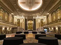 Within the first-floor mezzanine of the hotel, the Apollo Gallery displays two Baroque Grell murals inspired by Greek mythology, entitled “Apollo on Chariot” and “Hunt of Diana”. The Apollo Gallery acts as the entryway to the Continental Room, which opened as the hotel’s main dining area and also featured an ice rink. Four Grell murals, each depicting one of the four seasons, sit near the entrance to the room. The walls of the Continental Room were initially made of Oriental walnut, but the original walls were damaged in a renovation.[22]