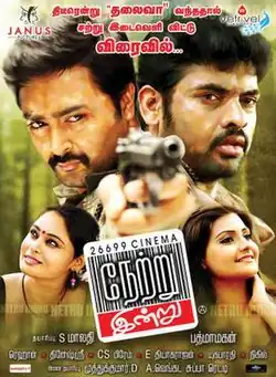 Netru Indru (transl. Yesterday, Today) is a 2014 Indian Tamil-language action drama film, directed by Padmamagan, a filmmaker who earlier directed Pallavan and the R. Parthiban-starrer Ammuvagiya Naan.[1] Prasanna and Vimal, along with Richard Rishi and Bharani of Naadodigal fame, played the lead roles, while Arundhati and Manochitra were the female leads.[2] Rehhan scored the music for the film, while Dinesh Sre was the cinematographer and C. S. Prem was the editor.[3] Shot entirely in forests of South India, Netru Indru draws a parallel between events happened in the past and ones that happens in the present in the forest.[1] Produced by S. Malathy, it was expected to hit the screens in August 2013,[4] but it did not release on the projected release date but after several delays in June 2014.[5]