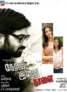 Netru Indru Naalai (transl. Yesterday, Today, Tomorrow) is a 2008 Indian Tamil-language film produced by Nukarapu Surya Prakasa Rao and directed by Lakshmikant Chenna. The film stars Ravi Krishna and Rekha Vedavyas (credited as Akshara).[1] The film was simultaneously made in Telugu as Ninna Nedu Repu.[2] The music was composed by Anil, and the film released on 9 October 2008.