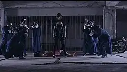 The music video features Sheena playing two characters: Rinnko (RINN子) and Linnko (LINN子), members of a fictional idol group called Rinrin (凜凜).[3][10] Linnko wears a black leather mini-dress while she attacks the men. The video also features dance scenes with both Rinnko and Linnko, alongside dance crew Idevian Crew members Mineko Saito, Nagisa Sugao, Ai Kaneko and Tomoko Yoda.[6][11] It was Sheena's first time attempting dance and action scenes.[9]