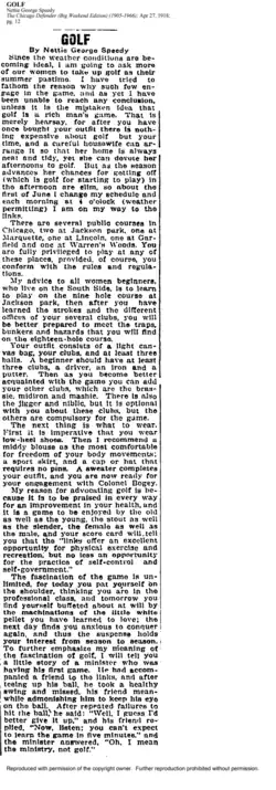 - ^ Nettie Speedy: Female Journalist, Founder of Chicago Women’s G.C. (usga.org), J.L. 02/12/21