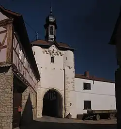 - Village fortifications – after 1320; partly built up with houses (Amtsgasse 31 and others); Gothic Kandelpforte (clocktower), 14th century, Baroque half-hip roof, 18th century, marked 1718, gateway raised in 1906