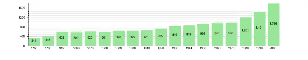 As of 2000, there were 679 private households in the municipality, and an average of 2.6 persons per household.[8] There were 166 households that consist of only one person and 67 households with five or more people. Out of a total of 689 households that answered this question, 24.1% were households made up of just one person and there were 6 adults who lived with their parents. Of the rest of the households, there are 196 married couples without children, 265 married couples with children There were 34 single parents with a child or children. There were 12 households that were made up of unrelated people and 10 households that were made up of some sort of institution or another collective housing.[9]