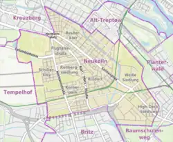 to the north and north-west, which together are commonly referred to as Rixdorf or Alt-Rixdorf ("Old Rixdorf").[note 10] The other primary neighborhoods are (from north to south):