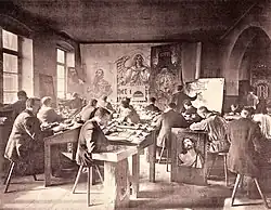^The banner reads Proletarier aller Länder vereinigt euch ("Proletarians of all countries unite"), quoting one of the famous rallying cries from the Communist Manifesto; the street at Neukölln's City Hall was eventually renamed to Karl-Marx-Straße.