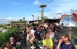 ^It was founded in 1981 and first occupied an area on Potsdamer Platz, before relocating to its lease on the Oderstraße in 1995; however, its lease was terminated at the end of 2023; Madlen Harbach, "Kündigung für Berlins ältestes Wagendorf: Wie geht es weiter mit den Neuköllner Rollheimern?", Tagesspiegel, 25 November 2023 (archived). One additional Wagenburg is the radical alternative queer trailer park Kanal, which has occupied a compound on the Neukölln side of Kiefholzstraße at the border to Plänterwald since 2010, though their domain had to be downsized by half for the new modular refugee center; the Wagenburg was formerly known as Schwarzer Kanal, and has existed in various inner-city locations since 1989.