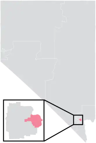 The district overlaps with Nevada's 1st, 3rd, and 4th congressional districts, and with the 12th and 14th districts of the Nevada Assembly.[4]