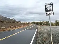 State Route 339 (SR 339) is a 11.523-mile-long (18.544 km) state highway in Lyon County, Nevada, United States. It starts at State Route 208 east of Wilson Canyon and it parallels that route to the west north to U.S. 95 Alternate (Goldfield Avenue) in Yerington.