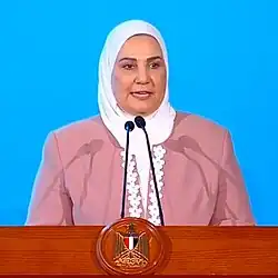 Nivine El-Kabbag (Arabic: نيفين القباج; born 10 November 1965) is an Egyptian politician and the current Minister of Social Solidarity since December 2019, in succession to Minister Ghada Waly.[1][2][3][4]