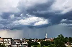 The Town Clock Church, now the Second Baptist Church, was used as the New Albany stop in the Underground Railroad.[10] The original steeple was destroyed by a lightning strike in 1915, and a new replica steeple was not completed until 101 years later in 2016.