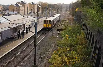 The main line of the Great Northern Railway (GNR) between Peterborough and London (Maiden Lane) was opened on 7 August 1850;[3] and Barnet was one of the original stations on the line.[4] On 1 May 1884, the station was renamed New Barnet.[5] The goods yard closed in 1966.[6] In 1896, the station was rebuilt to its modern form by re-siting the down platform opposite the existing up platform and providing a new brick structure on the new platform.[4]