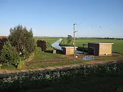 The area between the New Bedford River and the Great Ouse now lies at an average of 6.6 feet (2 m) below mean sea level, and three times that distance below the highest levels that tides normally reach. The low lying land is managed by the Littleport and Downham Internal Drainage Board, the successors to the Littleport and Downham Drainage Commissioners which were established by Act of Parliament in 1756. This act enabled the land to be enclosed, and the district has relied on pumped drainage ever since. The board are now responsible for 32,242 acres (13,048 ha) of fen land.[15] Water from the district is pumped into the New Bedford River by the Hundred Foot and Oxlode pumping stations, and into the Great Ouse by the Ten Mile, Moors, and Wood Fen pumping stations.[16]