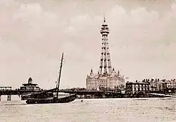 New Brighton Tower was a steel lattice observation tower at New Brighton in the town of Wallasey, Cheshire (now in the Borough of Wirral, in Merseyside), England. It stood 567 feet (173 m) high, and was the tallest building in Great Britain when it opened on 4 June 1898.[1] Neglected during the First World War and requiring renovation the owners could not afford, dismantling of the tower began in 1919, and the metal was sold for scrap. The building at its base, housing the Tower Ballroom, continued its use until damaged by fire in 1969.