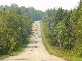 Route 124 is an east/west provincial highway in the Canadian province of New Brunswick. The road runs from Route 1 exit 175 in Valley Waters as far as the Saint John River, where it crosses the Evandale Ferry to Evandale and an intersection with Route 102. The road has a length of approximately 41.3 kilometres, excluding the distance across the river, and services small, otherwise isolated rural communities. In these areas, the highway is often unofficially referred to as "Mountain Road."