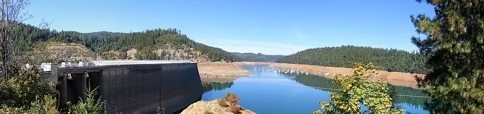 New Bullards Bar Reservoir is a large reservoir in northeastern Yuba County, California, United States, at an elevation of 2,000 feet (610 m) in the Tahoe National Forest and about 30 miles (50 km) northeast of Yuba City. The 969,600 acre-foot (1.1960×109 m3) reservoir is formed by New Bullards Bar Dam on the North Yuba River, a tributary of the Yuba River. It also receives a portion of the Middle Fork's flow that is diverted to the reservoir via tunnels.