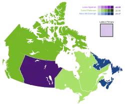 As the fortunes of the Nova Scotia NDP were slowly rising during the mid-1990s, the same could not be said of its federal counterpart as the 1993 Canadian federal election was an unmitigated disaster for the NDP.[1] Under Audrey McLaughlin's leadership, the party suffered its worst defeat since the late 1950s in terms of seats, and the worst showing[1] for a federal social-democratic party in the 20th century, with just seven percent of the vote.[1] The party had nine seats, three short of the twelve seats needed to have official party status in the House of Commons, and all the extra funding, research, office space and Question Period privileges that status accords.[1] In the aftermath of the 1993 election, the party set about reforming its policies and purpose, with McLaughlin announcing on April 18, 1994 that she would step down as leader by 1996.[2] McLaughlin, faced with internal squabbles like the ones that occurred in the Nova Scotia party back in 1980, advanced her departure from the end of 1996 to the end of 1995.[3] With an internal party atmosphere that could best be described as toxic, Alexa McDonough, Lorne Nystrom, and Svend Robinson, entered the leadership campaign in the spring of 1995.[4] The conditions were similar to the ones that McDonough faced during her first leadership campaign in Nova Scotia during 1980: a divided party that was self-immolating.[4]