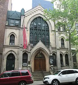 New Dramatists is located in a former church built in the 1880s in the Gothic Revival style. It was the location in turn of St. Matthew's German Lutheran Church, the Lutheran Church of the Redeemer, the Lutheran Metropolitan Inner Mission Society, and, by the mid-1960s, the All People's Church.[6][7][8]