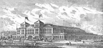 In 1885 the exhibition building was sold to the Metropolitan Horse Railroad, for use as "a storage and repair shop." The building burnt to the ground in June 1886, in a massive fire that killed 8 people.[13]