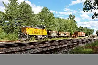 The New England Southern made its final run to Manchester on October 16, 2010, after 25 years of reliable service. Following that run, the railroad set up a new headquarters on an expanded yard trackage on state-owned property, off Exit 18 of I-93 in Canterbury. In an ironic twist of fate, the shortline had been more or less relegated to its original form, operating solely on the White Mountain Branch. Since 2010 the railroad has operated on an as-needed basis, serving the 3M plant and delivering the odd equipment move to the Hobo Railroad. Occasional special moves, including 2014 and 2018 contracts with the New Hampshire Army National Guard to ship military equipment to and from training exercises, have supplemented the railroad's income.[1]