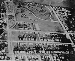 Opinions vary as to the exact location of the racetrack itself. During the 1880s the land once owned by Thomas Adams was marketed for subdivision as the "Old Racecourse Estate", but allotments 28 to 30 included both the site of New Farm Park, as well as the land to the north of the small creek that formed the park's north-eastern boundary. In 1895, Merthyr Road was known as "Old Racecourse Road", and in 1913 the annual report of Henry Moore referred to the "old racecourse paddock" that was to become "New Farm Park". A 1925 aerial photo (John Oxley Library) appears to show the remains of the track on the site of the Colonial Sugar Refining Company Refinery and the site of the Powerhouse, intersected by Lamington Street near the river.[1]