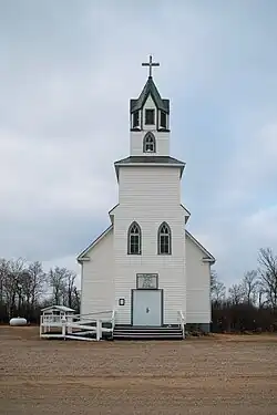 The three families who originally came to the area wrote letters back to friends and family still residing in Finland, describing the settlement and urging them to come to Canada. Soon the New Finland district had swollen to 50 people.[10] A letter to the Dominion of Canada Minister of the Interior was written February 15, 1900, by Samuel Kivela and Thomas Karppinen clergyman requesting information about settlement prospects in Canada. This letter was in response to articles placed in the Finnish newspapers by the United States who wished to discourage settlement in Canada. The Canadian Department of the Interior responded promptly, and advised that the Finnish newspapers would soon have reports directly from agents from Finland who had travelled from Finland to inspect Canada first hand.[11][12] Many of these new immigrants were "Church Finns" with strong religious beliefs. By 1893 they had established their religious institution, the St. John Suomi (Finnish) Lutheran Synod; in 1907 they built their church.[13] By 1899, a Finnish consul found the population close to 250 persons.[14] The community had erected both a church and two schools, New Finland School District 435 in 1896 and Nurmi Oja SD #1416 in 1906.[7][10][15] In 2010, around 200 people identify themselves as part of the New Finland district.[7]