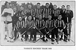 Efforts to organize an ice hockey team at New Hampshire College of Agriculture and the Mechanic Arts date to the early 1910s.[3] By January 1914, a college team was playing "a short schedule of games" against local teams such as an athletic association from Exeter, New Hampshire.[4] A summary of the 1914 hockey season—the team had a record of two wins and two losses—appeared in the college's 1916 yearbook.[5] However, games from this era are not considered part of varsity history. In July 1923, the school was renamed the University of New Hampshire (UNH).