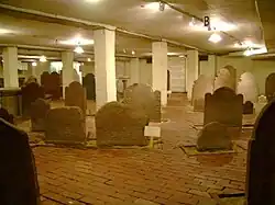 The Green was used as the main burial grounds for the residents of New Haven during its first 150 years, but by 1821 the practice was abolished and many of the headstones were moved to the Grove Street Cemetery. However, the remains of the dead were not moved, and thus still remain below the soil of the Green. It is conservatively estimated that between 4,000 and 5,000[9] people remain buried there, including Benedict Arnold's first wife, members of President Rutherford B. Hayes' family, Reverend James Pierpont (founder of Yale University), and Theophilus Eaton, one of the founders of New Haven and the church and governor of the New Haven Colony for 19 years.
