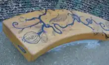 The small Falmouth Road Park opened in March 2006.[18] The original bench was made from timber from a London plane tree that once stood on the Tower of London Wharf, and featured designs created by local children. The bench deteriorated and was replaced with a plain design in 2022. The park became popular with street drinkers, addicts and homeless people, and in November 2024 Southwark council installed lockable gates and started locking the park from sunset to 0730.[19]