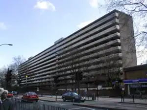 Beyond the railway bridge stands Albert Barnes House, an 18-storey block of council flats owned by the London Borough of Southwark. From 1883 to 1886, this was the site of a fish and provisions market promoted by Samuel Plimsoll.[3] Albert Barnes House was completed in 1964 and contains 99 flats. There was a serious fire in Albert Barnes House in the early hours of 30 January 2007 and all 250 residents were evacuated. One flat was gutted, and another seriously damaged [16]