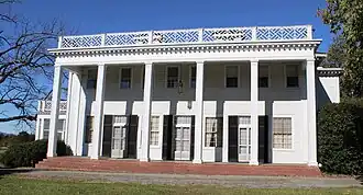 Patrick Henry delivered his famous "beef" speech during the John Hook trial in the New London Courthouse.[2][3] Other prominent historical figures with connections to New London include Thomas Jefferson. Jefferson constructed his retreat, Poplar Forest, near New London in Bedford County. New London was also home to a Revolutionary-era arsenal. In 1781, Bedford County was divided in two, forming Campbell County. The Bedford county seat was then relocated to Liberty, later known as the town of Bedford. After the county seat and court were moved, the former bustling commercial center declined.[4]