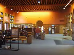 By this time, many of the 1970s repairs were beginning to wear down, and the city put aside its plans for the maritime museum.[14] The New London Railroad Company, fronted by historian Barbara Timken and local businessman Todd O'Donnell, bought the station from the city as the New London Railroad Company in 2002. The pair organized a second full restoration of the station, including a new slate roof, restored brickwork, and restoration of the waiting room to its original configuration.[2] The mezzanine level and basement atrium created in the 1976 renovation were removed.[14] Additionally, mechanical systems were upgraded and various accessibility concerns addressed. The baggage room was restored for Greyhound use.[29] Amtrak and Greyhound rent space from the company for offices and passenger waiting areas.[33]