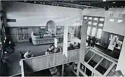 Union Station Associates spend hundreds of thousands of dollars on a full renovation of the building for combined use by Amtrak and commercial tenants.[19] The exterior was restored to the original 1885 specifications.[15] However, some of the interior work modified the station far from its original configuration. A mezzanine was built over half the waiting area to provide restaurant seating, and the floor of the rest was cut out to create an atrium. The basement became the passenger waiting area, with a newsstand and a plant shop occupying additional space.[27][29] New, wider platforms were built to improve the boarding experience.[9] The renovated station was celebrated and rededicated in July 1976.[19] The New London Day, which five years before called the station an "eyesore", ran their coverage under the headline "We were wrong!"[25] New London Union Station was the first station in the country to be restored for Amtrak use.[15] It represented a "watershed" in historic preservation as one of the first industrial age structures in New England to be reused – a shift away from the previous attitude that valued only Colonial buildings – as well as the recognition of the historic value of the old downtowns of New England's port cities.[25]