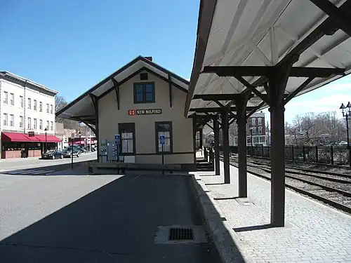 New Milford station is a former railroad station on Railroad Street in New Milford, Connecticut. Built in 1886 by the Housatonic Railroad Company, it cemented the town's importance as a regional tourist and business center. It served passenger service until 1971, and is now home to the Greater New Milford chamber of commerce.[2] It was listed on the National Register of Historic Places in 1984.[1]