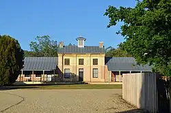 Situated outside the town's centre, Willow Court is bound by Humphrey Street to the west, George Street to the north, and the Avenue, as well as the southern-flowing Lachlan River, a branch of the River Derwent. The site features 23 buildings and landscape elements across approximately 18 hectares (44 acres).[25] Architecturally, the site features a range of historical buildings, including the Barracks (the original building), which has been preserved. The complex also has later additions built in various architectural styles reflecting the evolving function of the institution. Operating as large antiques centre, today Willow Court is regarded as a heritage site, with ongoing efforts to preserve and redevelop parts of it for tourism, community use, and historical interpretation.